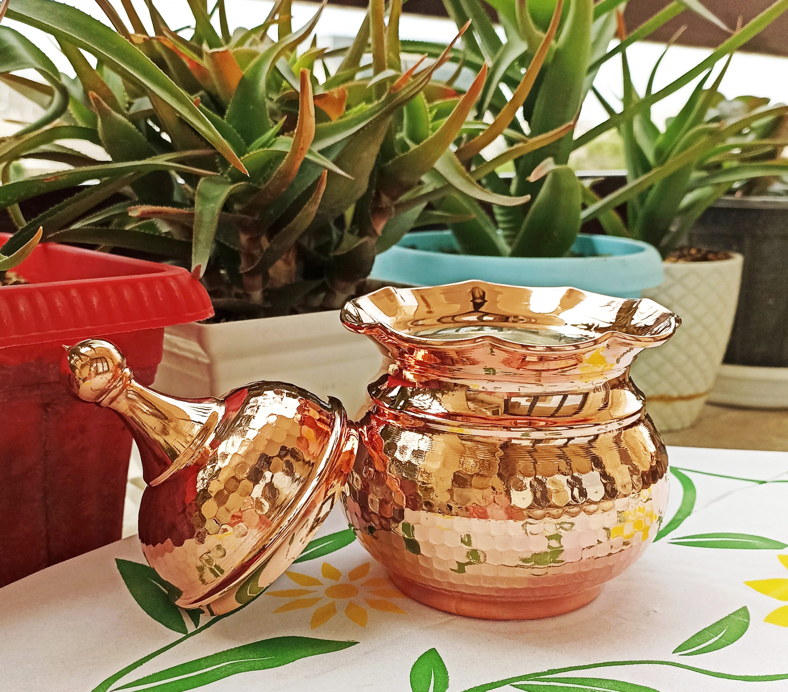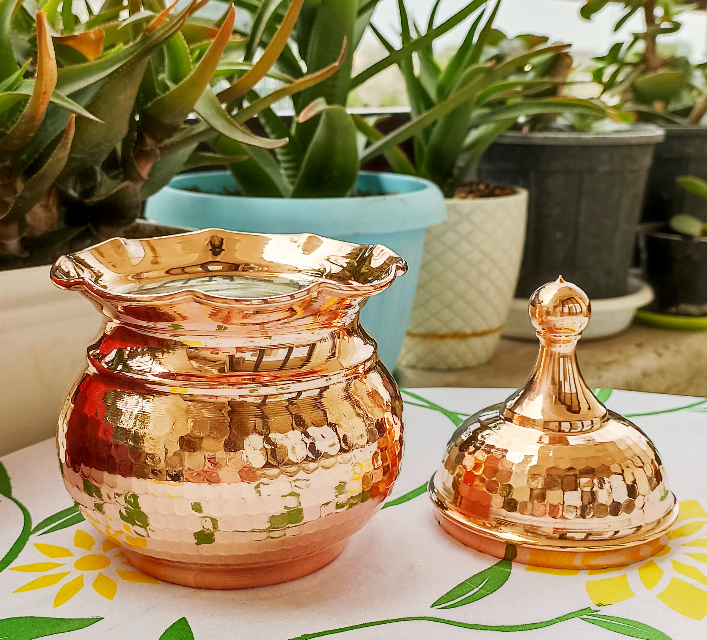 قندان مسی لب چین درب دار بدون پایه